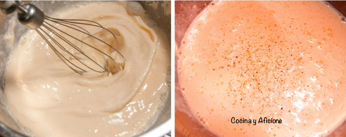 - En un bol bate juntos la nata con el queso, los huevos y las especias bate hasta obtener una mezcla uniforme
