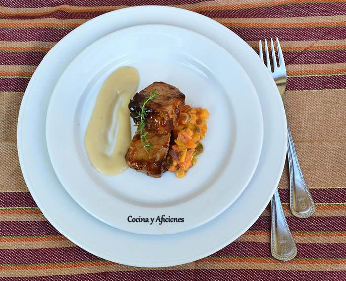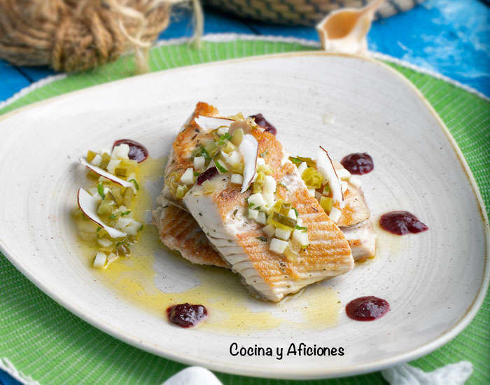 Bonito del norte con salsa de picotas del Jerte y oloroso, receta deliciosa