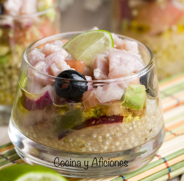 Vasito de quínoa y ceviche de bonito del norte, receta festiva