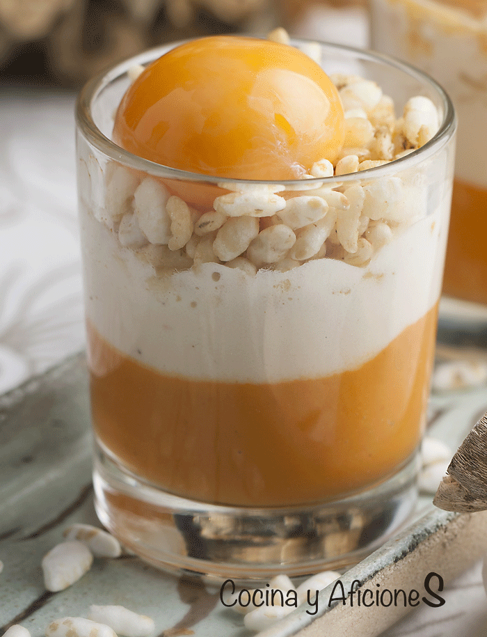 Vamos a celebrar el día del huevo con un vasito de brandada de bacalao, culis de pimiento y yema curada muy especial, delicado y delicioso, un aperitivo fantástico que hará que tus comensales te aplaudan.
