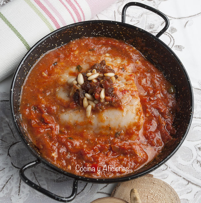 Vamos a preparar un bacalao muy especial, con tomate a la manera tradicional, pero con un punto diferente, le añadiremos para darle un toque especial pasas y piñones, un toque dulce y otro crujiente. Perfecto.