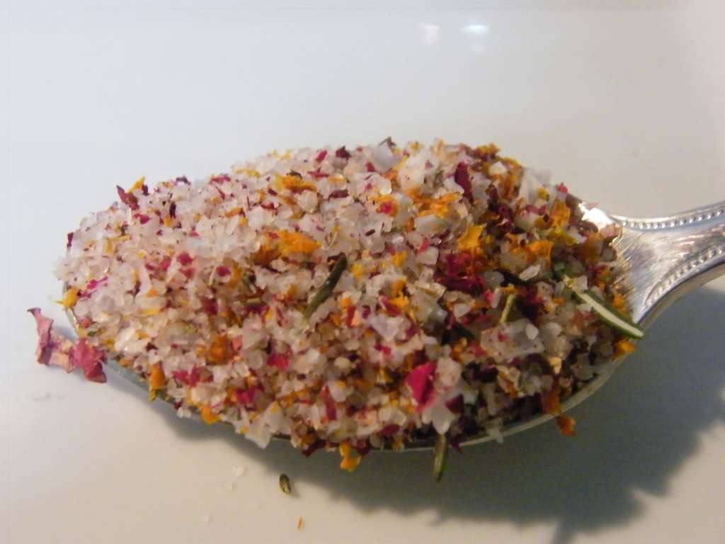 Sal de pétalos de rosa, romero y piel de naranja, receta