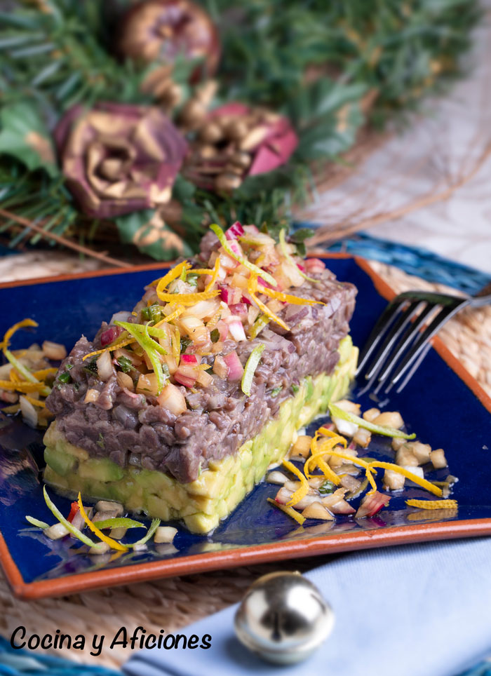 Quiero despedir el año con esta súper receta de salpicón verde en timbal de buey gallego del chef mexicano Roberto Ruiz, lo conoceréis por su restaurante punto MX en el que se come de maravilla y por su super libro donde recoge unas recetas de campeonato, los platos estrella de su casa.