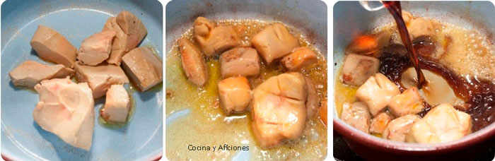 - Colocamos el foie en una olla y lo llevamos al fuego suave para que no se arrebate dejamos que se vaya fundiendo.