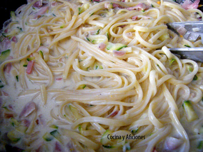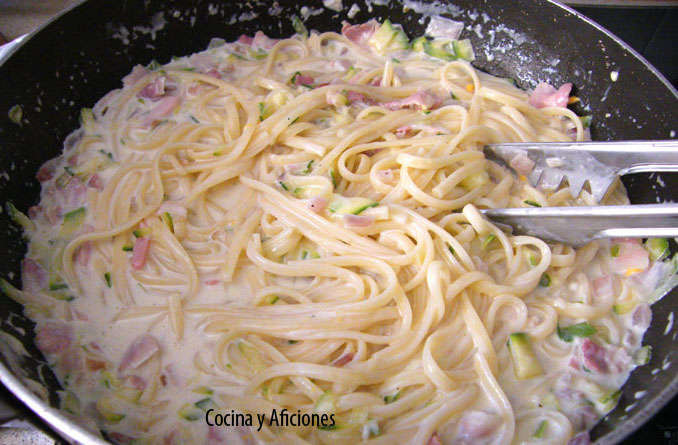 - tropezones de la pasta con queso, con nata y tallarines
