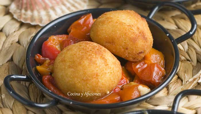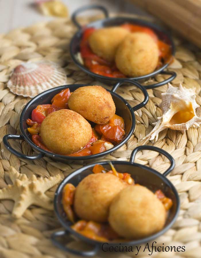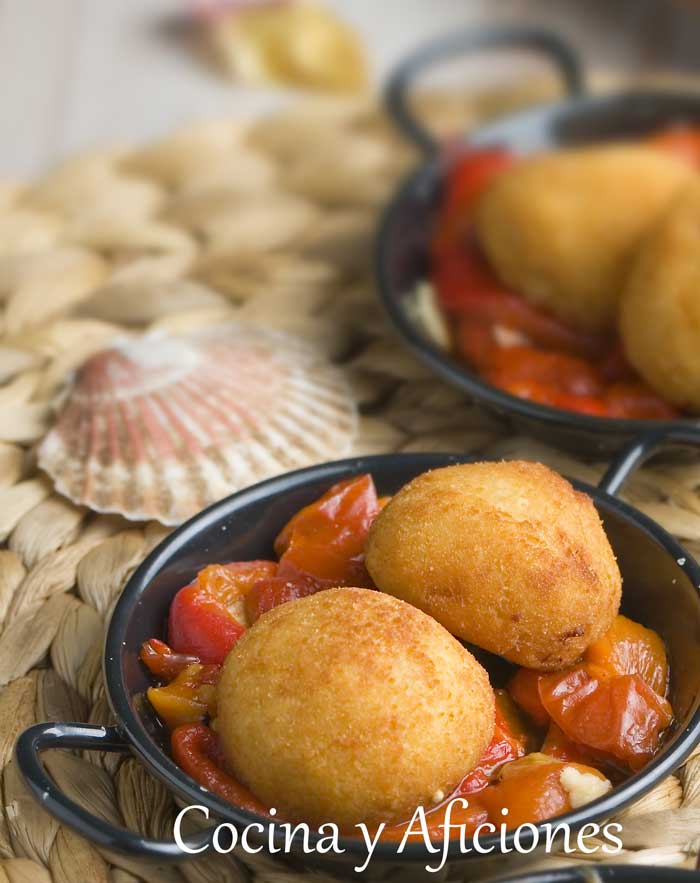Tapa de croquetas de bonito con pimientos, un aperitivo delicioso
