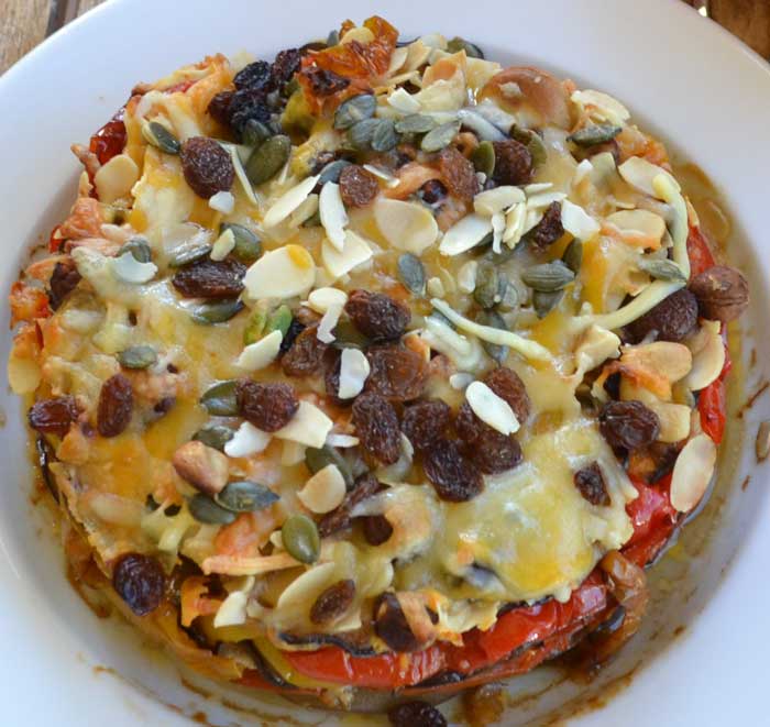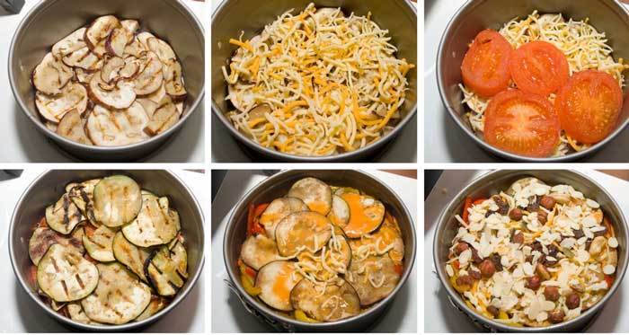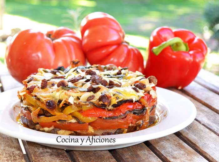 Esta tarta admite otras verduras, calabacín, puerro, cualquier tipo de cebolla, calabaza… lo que tengas en la cocina. Además el orden de las capas da igual, como te venga mejor, solo tienes que guardar un orden con la primera capa que obligatoriamente será de berenjena para crear una base solida.