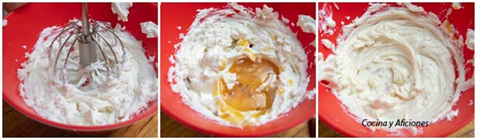 1. Bate la ricotta hasta que esponje, añádele una generosa cantidad de miel especiada, integra bien todos los ingredientes, guarda en la nevera en una manga pastelera