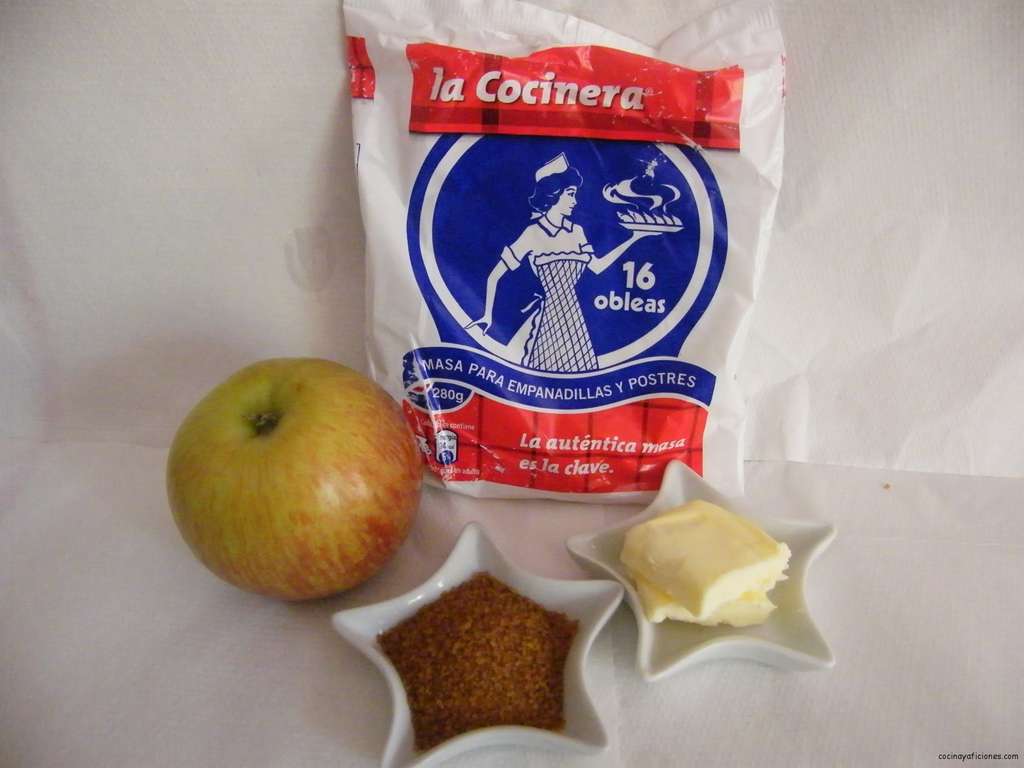 1 bolsa de masa de empanadillas grande de “La Cocinera”, 50 gr. de azúcar moreno, 1 manzana para cada 4 tartaletas, mantequilla.