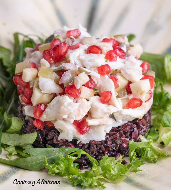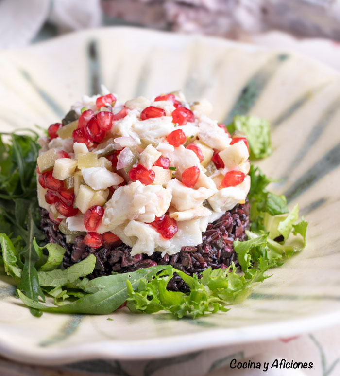 • Nunca he probado el salpicón de lubina, pero me parece una idea estupenda para una receta y con arroz negro va fenomenal. Un plato riquísimo