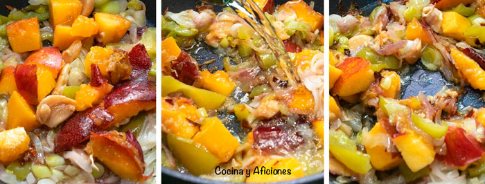 - Agregamos el tomate picado, la pulpa de los choriceros las nectarinas peladas y troceada