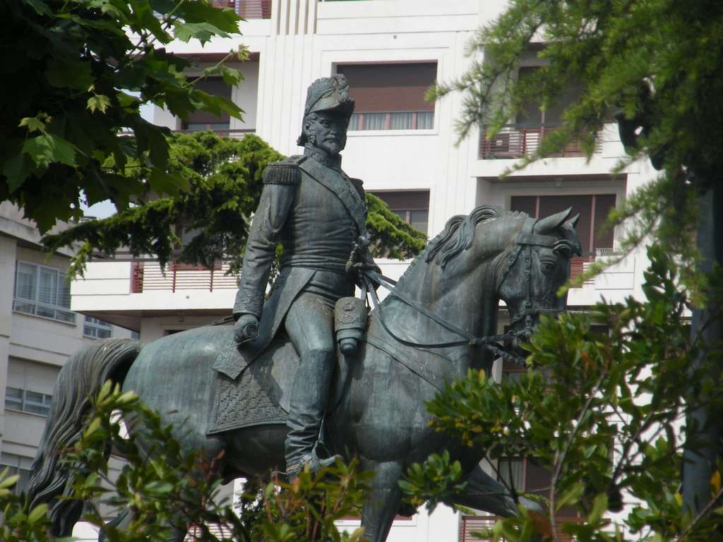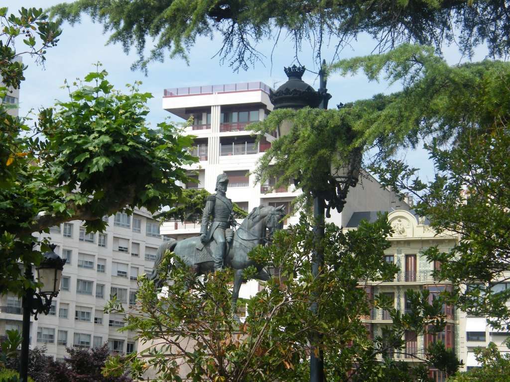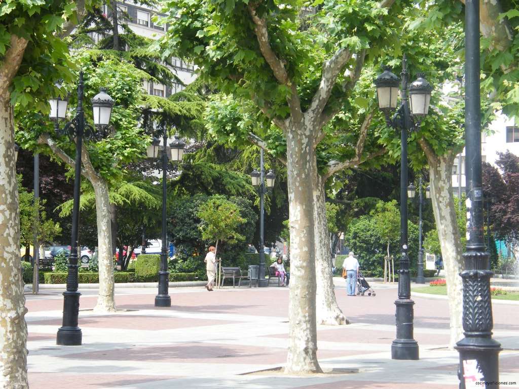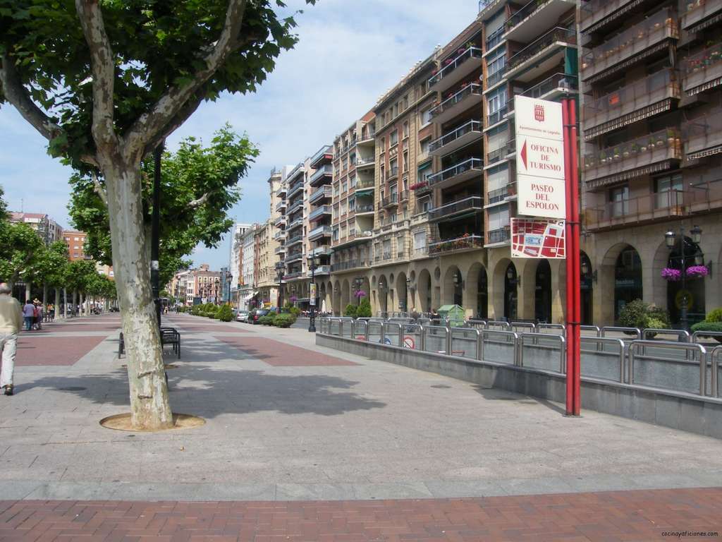 Empezamos el paseo por la Plaza del Espolón, centro de la ciudad y de fama mundial por su estatua ecuestre del General Espartero, pero no es conocida la estatua por el intrépido general sino por los gigantescos atributos del caballo causa de chascarrillos y refranes de tono jocoso. Es una plaza amplia y acogedora .