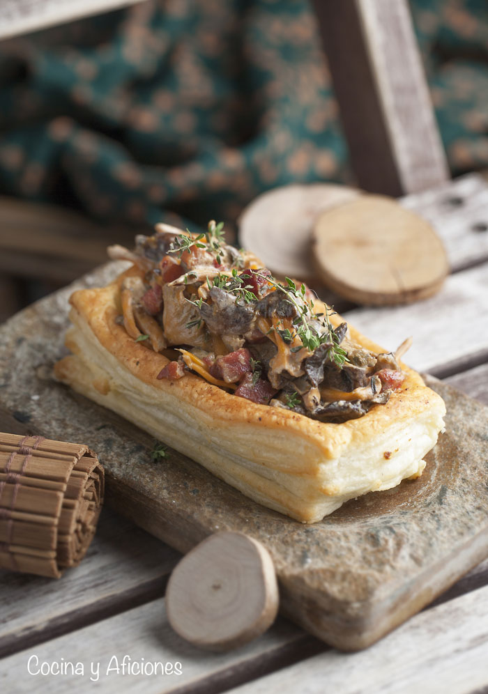 Rellenar los hojaldres con las setas y regar con la salsa, servir inmediatamente.