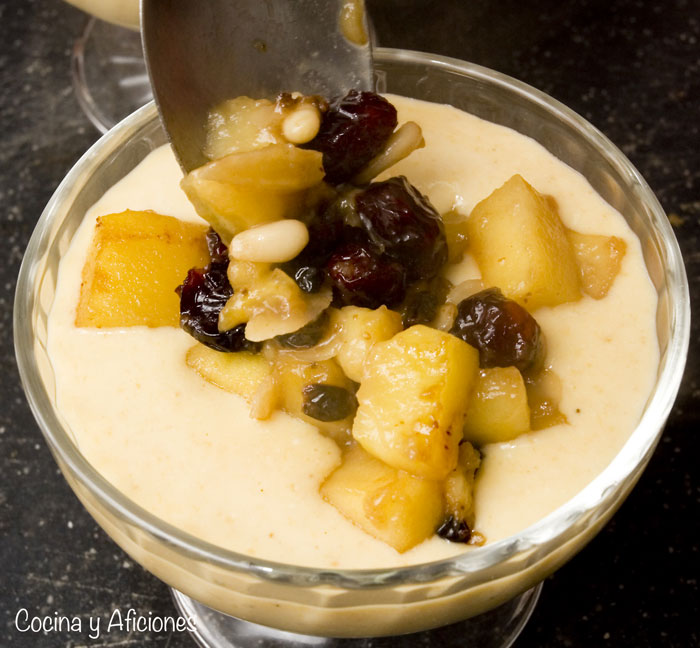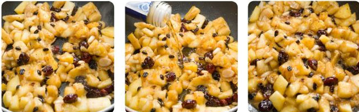 • Añade las frutas, los frutos secos y azúcar a tu gusto, deja unos cinco minutos que empiecen a tomar color