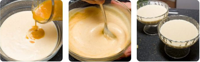 5. Mezcla el pure de mango con el yogur batido, a tu gusto.